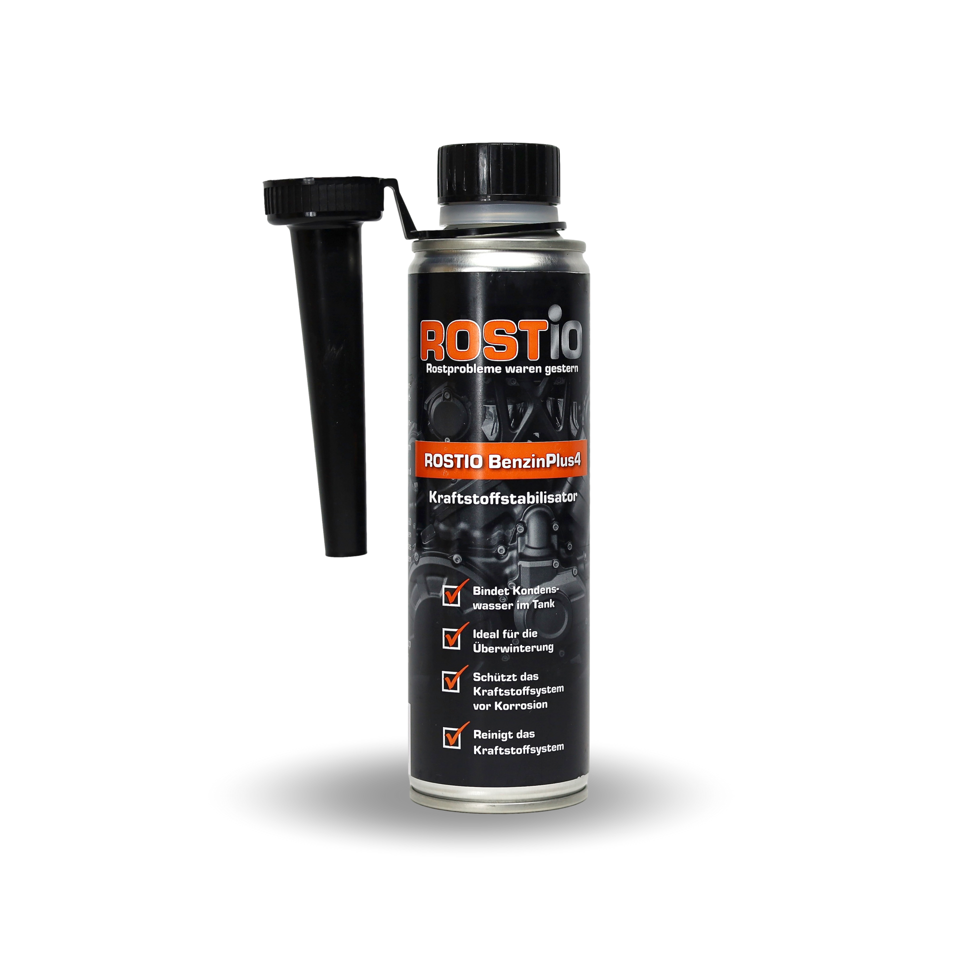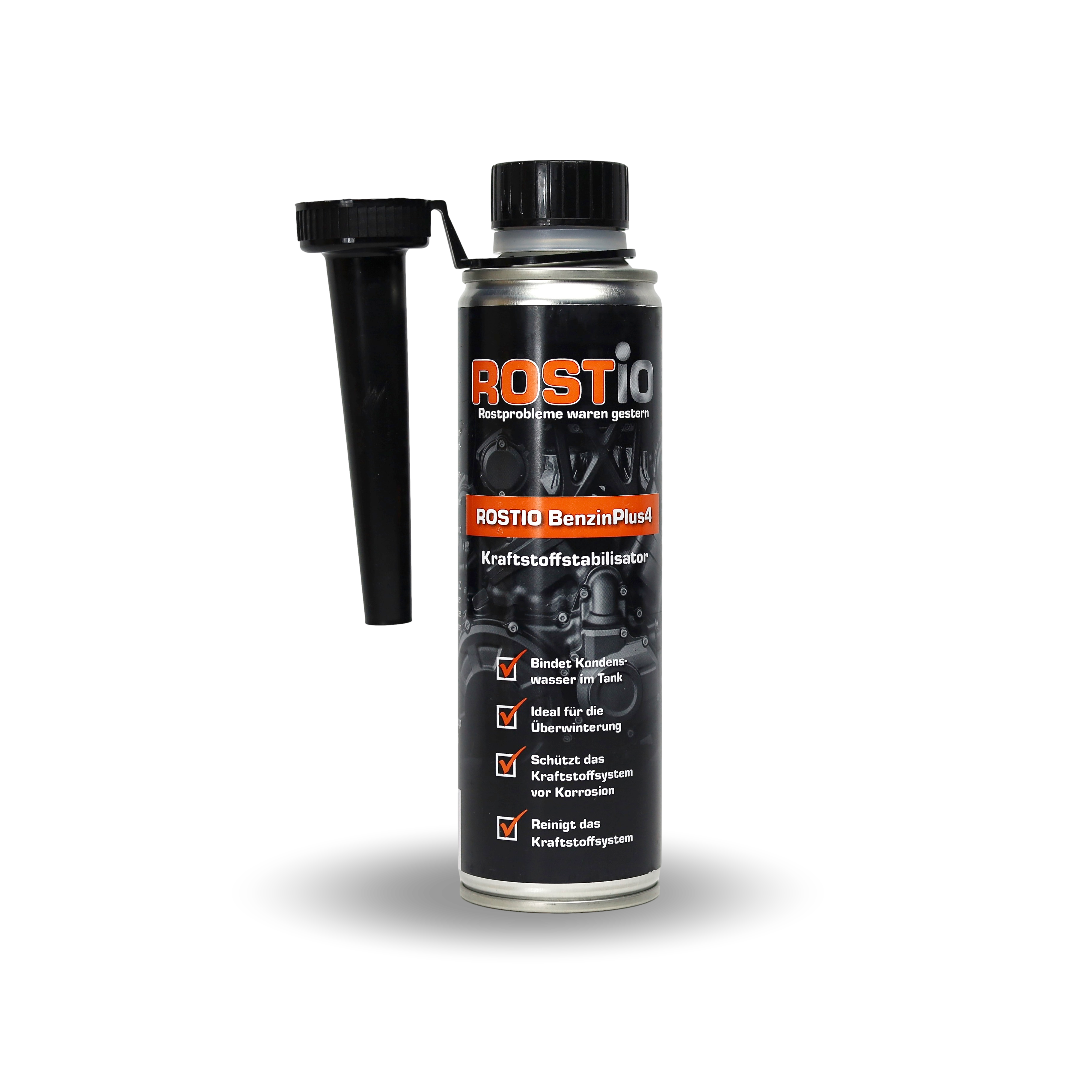 Merkmale: Rostio BenzinPlus4 bietet die Eigenschaft, Kondenswasser zu binden und den Kraftstofftrakt vor Korrosion zu schützen. Des Weiteren reinigt es Ablagerungen in Vergasern und Einspritzanlagen, eignet sich ideal für die Fahrzeugüberwinterung, verbessert das Startverhalten und verhindert LSPI (Vorentflammung bei Fahrzeugen mit Direkteinspritzung).